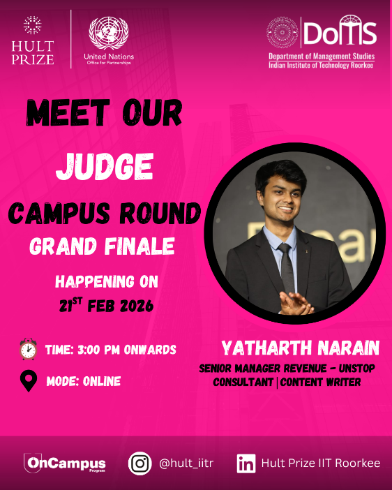 On February 18, 2026, participants were treated to an exclusive mentorship session titled “What to Do. What to Avoid.” featuring Kunal Shaw (EPH’25) and Ritik Payak (EE’25), Co-Founders at Protoncraft Innovations and veterans of the Hult Prize 2024 competition. Having navigated the competition themselves and made it to the finale, Kunal and Ritik brought candid, first-hand guidance on refining business models, surviving the Q&A rounds, and avoiding the common pitfalls that trip up even the most promising teams. The session was invaluable for participants looking to bridge the gap between a good idea and a winning pitch.
